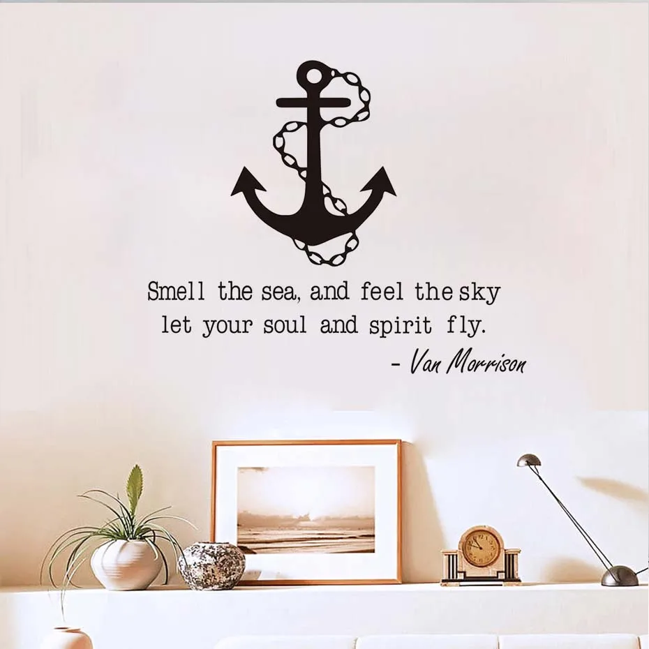 Smell The Sea And Feel The Sky Inspirational Quotes Anchor Wall Sticker Removable Pvc Stickers Living Room Home Decor